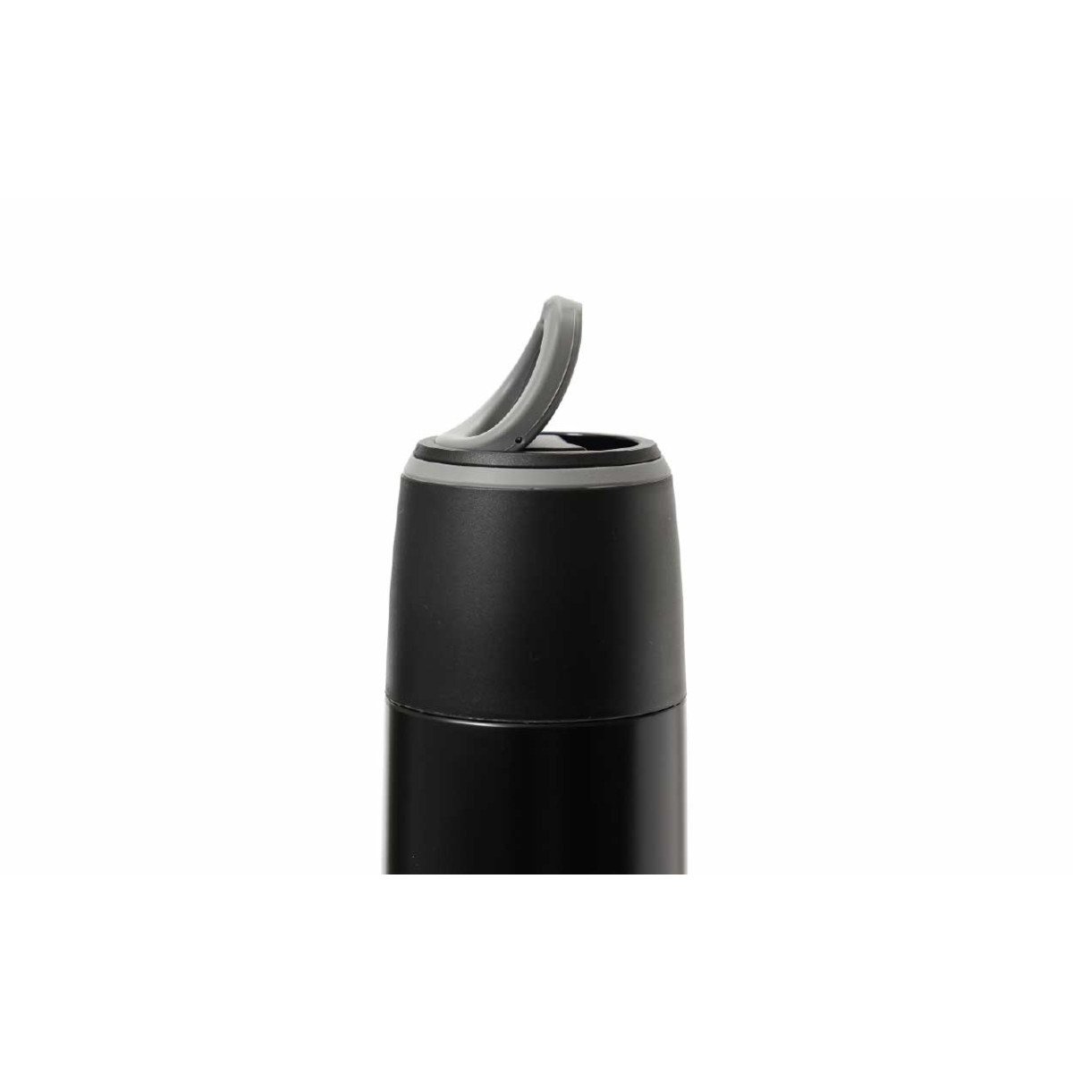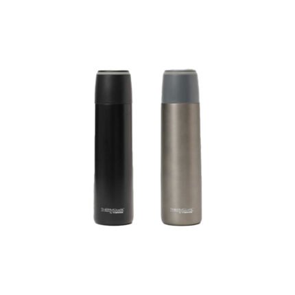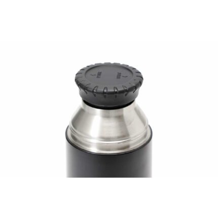 Termo de doble pared de acero inoxidable, con aislamiento al vacío. Mantiene líquido caliente como frío. Cuenta con tapón a rosca, a prueba de fugas, con portavasos de tritán y borde de silicona. Capacidad: 1L.