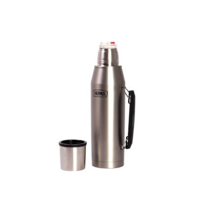 Termo de acero inoxidable con doble aislamiento térmico que manteniene los líquidos fríos o calientes durante horas. Con pico vertedor y cierre hermético, que evita derrames.