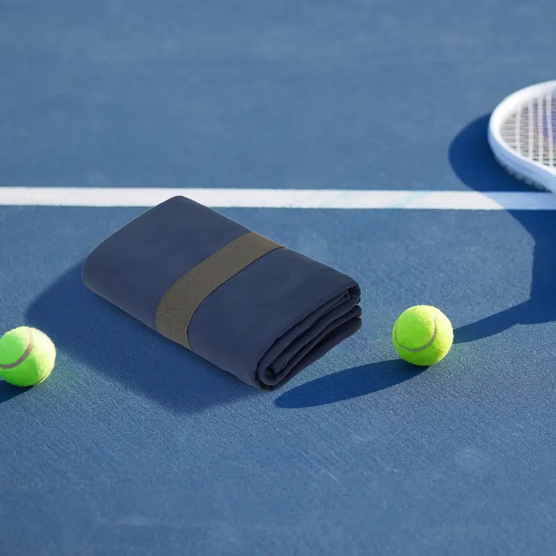 Toallón de microfibra de secado rápido y máxima absorción. Puntas redondeadas y elástico combinado para optimizar su guardado. Medida: 130 x 80 Cm. Tahg.