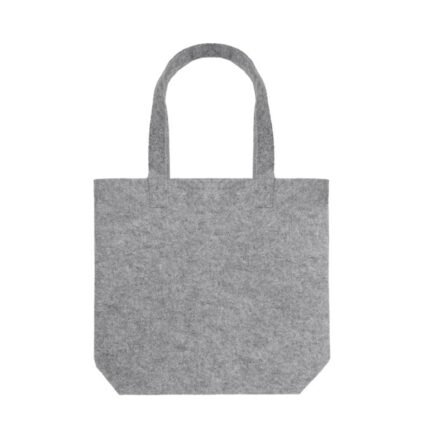 Bolsa tote confeccionada en fieltro reciclado color gris. Cuenta con dos correas de 70 cm para colgar al hombro.