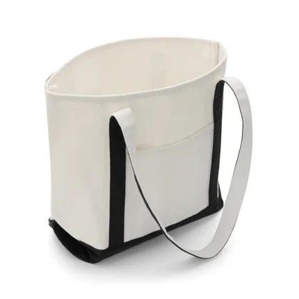Bolso tipo tote de lona resistente. Hecho de lona canvas de 24 oz. Cuenta con amplio compartimento principal, doble asa reforzada y base resistente. Es ideal para llevar objetos de uso diario, hacer compras o salidas al aire libre con comodidad y estilo.
