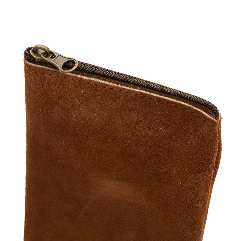 – Material: Cuero gamuzado vacuno color óxido.